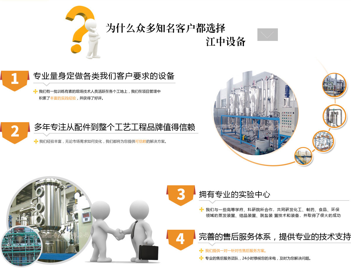 江陰市江中設備制造有限公司是一家專業從事蒸發(fā)、濃縮、提取、污水處理等設備的廠家。廣泛應用于制藥、化工、食品、農副產品深加 冶金、電子等多個領域。產品遍及全國三十余個省、市、區,并遠銷歐美及東南亞一些國家和地區。公司實力雄厚,匯聚了一批高層次、高素質 的專業人才,一直致力于產品的開發(fā)、生產和管理,并十分注重科技創(chuàng)新,所生產的設備受到用戶的青睞。